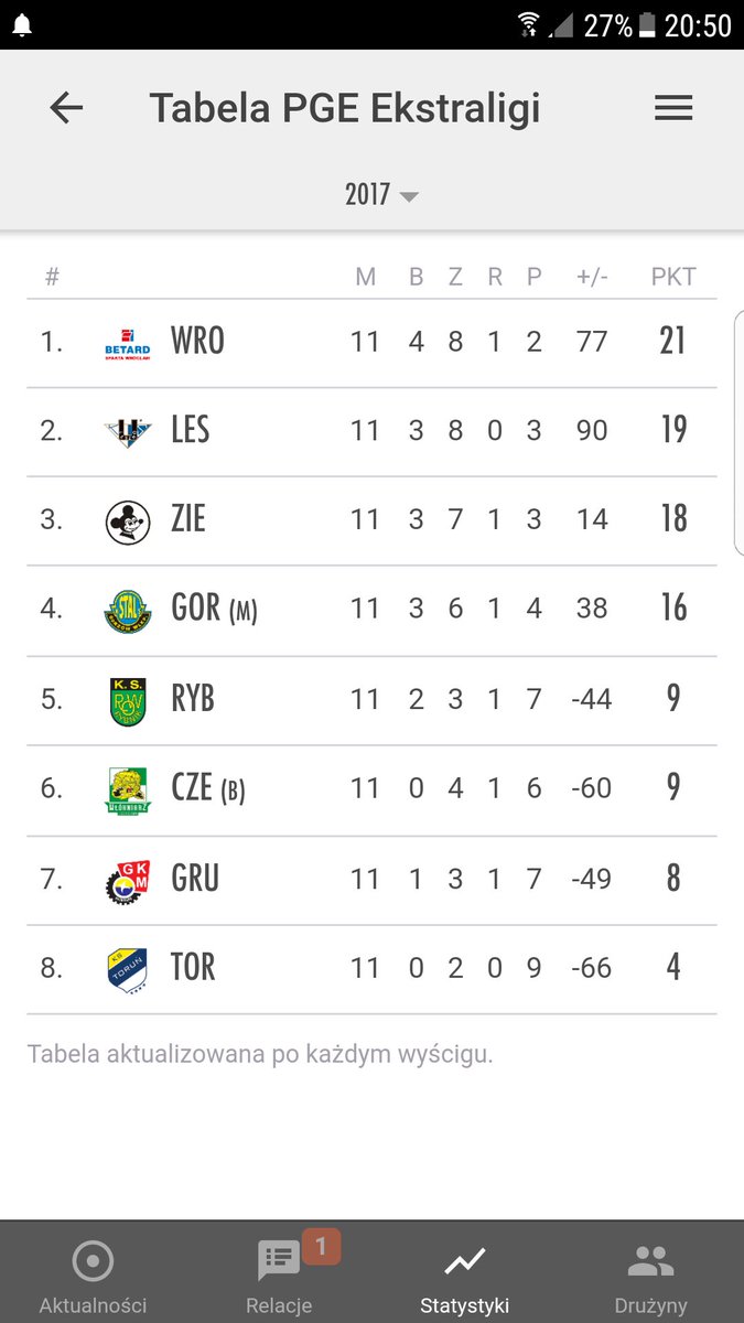 Pge Ekstraliga On Twitter Aktualna Tabela Pge Ekstraligi Live